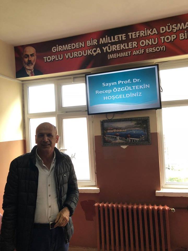 Çanakçıdaki konferans sonrası Çanakçı Kaymakamı tarafından Prof.Dr.Recep Özgültekin’e yöreye özgü peştamal ve kemençe hediye edildi.