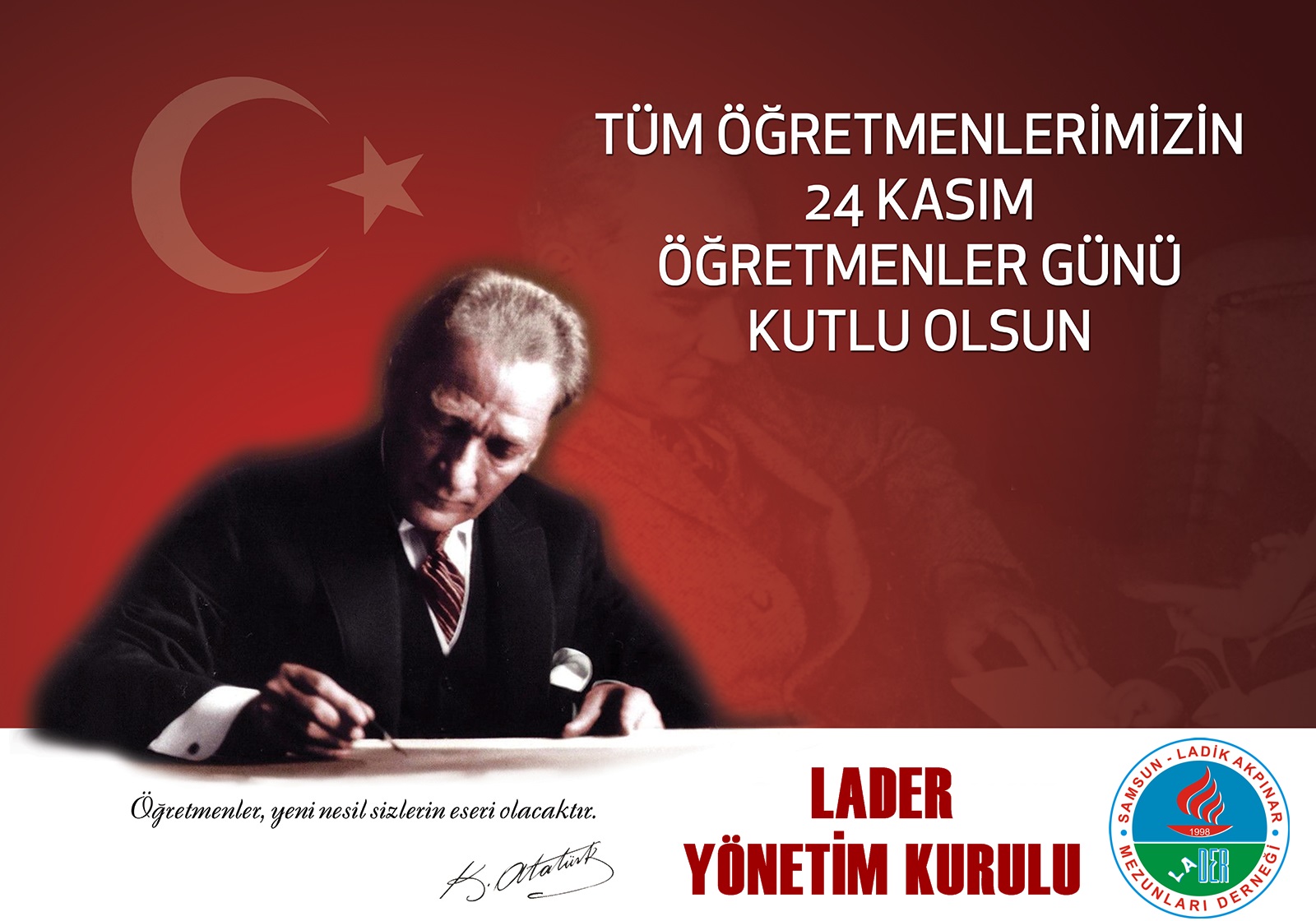 Lader Samsun Şubesi Yönetim Kurulu Üyeleri 24 Kasım 2016 tarihinde Öğretmenler Günü dolayısıyla Başöğretmen Mustafa Kemal Atatürk Anıtına saygı duruşuyla, çelenk sunumunda bulundu.